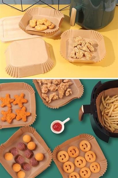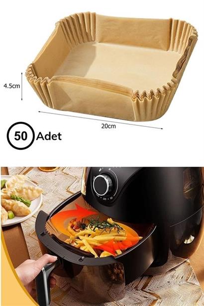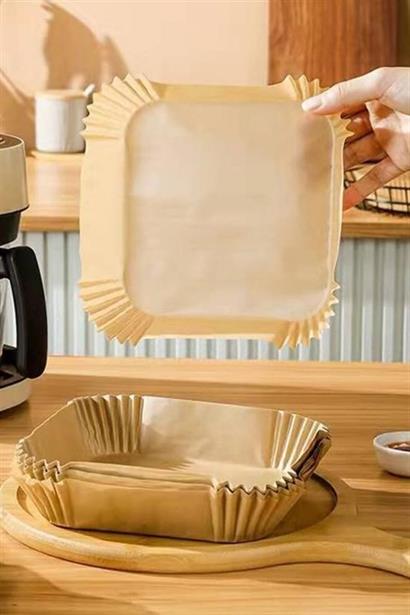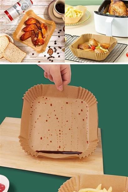 BUFFER® 50 Adet Air Fryer Pişirme Kağıdı Tek Kullanımlık Hava Fritöz Yağ Geçirmez Yapışmaz Gıda Pişirme Kağıdı Kare Tabak Model