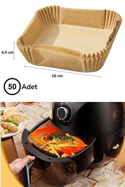 Paket İçeriği: 50 Adet Kare Tabak Model Air Fryer Pişirme Kağıdı