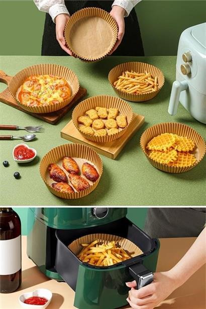 BUFFER® 50 Adet Air Fryer Pişirme Kağıdı Tek Kullanımlık Hava Fritöz Yağ Geçirmez Yapışmaz Gıda Pişirme Kağıdı Yuvarlak Tabak Model