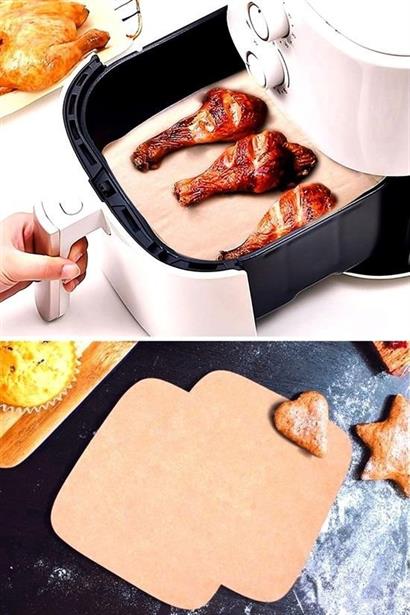 50 Adet Air Fryer Pişirme Kağıdı Tek Kullanımlık Yağ Su Geçirmez Yapışmaz Deliksiz Düz Kare Model