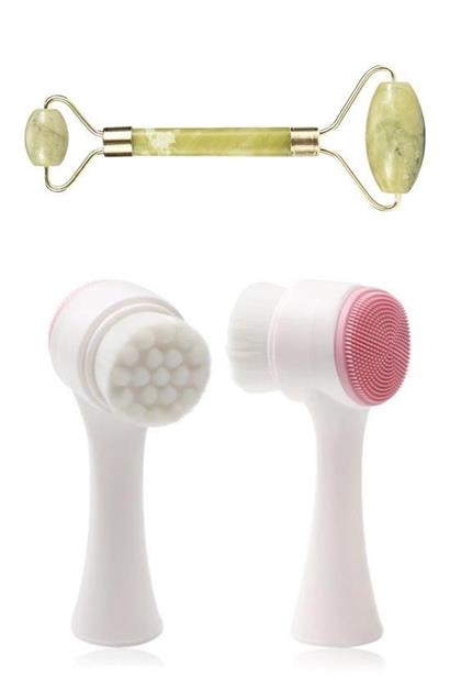 1 Adet Yeşim Taşı Çift Taraflı Cilt Masaj Aleti + 1 Adet Çift Taraflı Yüz Temizleme ve Siyah Nokta Giderici Fırça