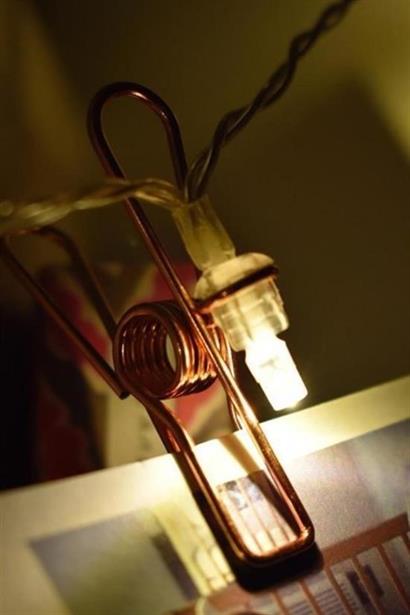Bakır Renkli Fotoğraf Asma Mandallarının rengi ışık ile birleşince oluşturduğu görüntü daha da güzelleşecek