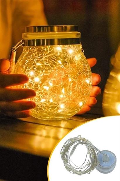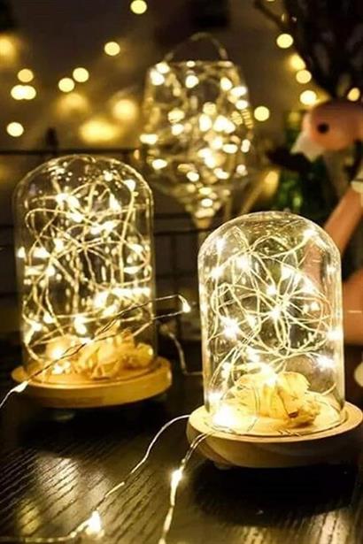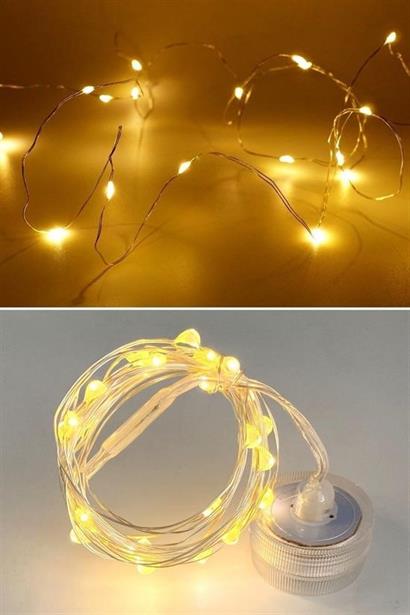-Bakır tel günışığı led ışık zinciri, 2 Adet kalem pil ile çalışır