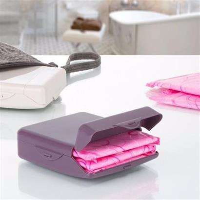 Kadınların en önemli ihtiyaçlarından olan pedlerin daha hijyenik bir şekilde yanlarında taşımaları için Çanta İçi Hijyenik Ped Kutusu özel olarak tasarlandı