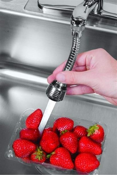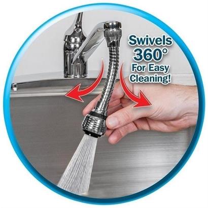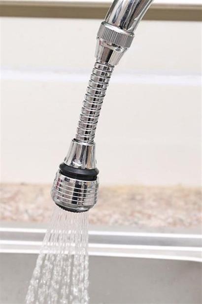 360 derece musluk başlığının esnek 7 cm uzunluğundaki plastik hortumunu istediğiniz yöne çevirebilirsiniz